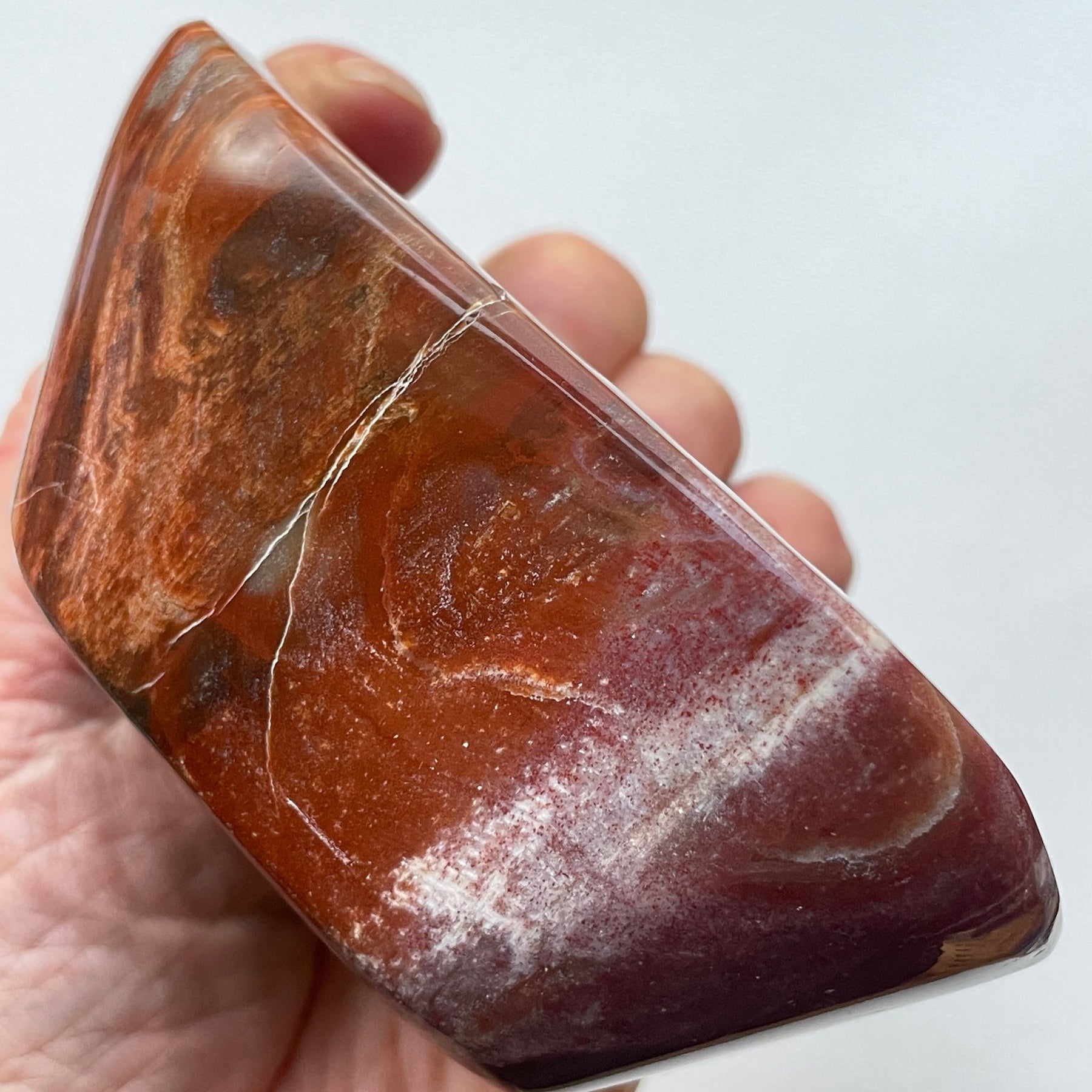 Petrified wood forms when ancient trees are buried under sediment and mineral-rich water replaces the organic material cell by cell. The stunning colors you see are created by different minerals present during fossilization: iron oxides produce the rust, umber, and orange hues, while manganese creates grays and blacks. Each piece is a snapshot of geological history, preserving the wood's original grain and texture in stone.