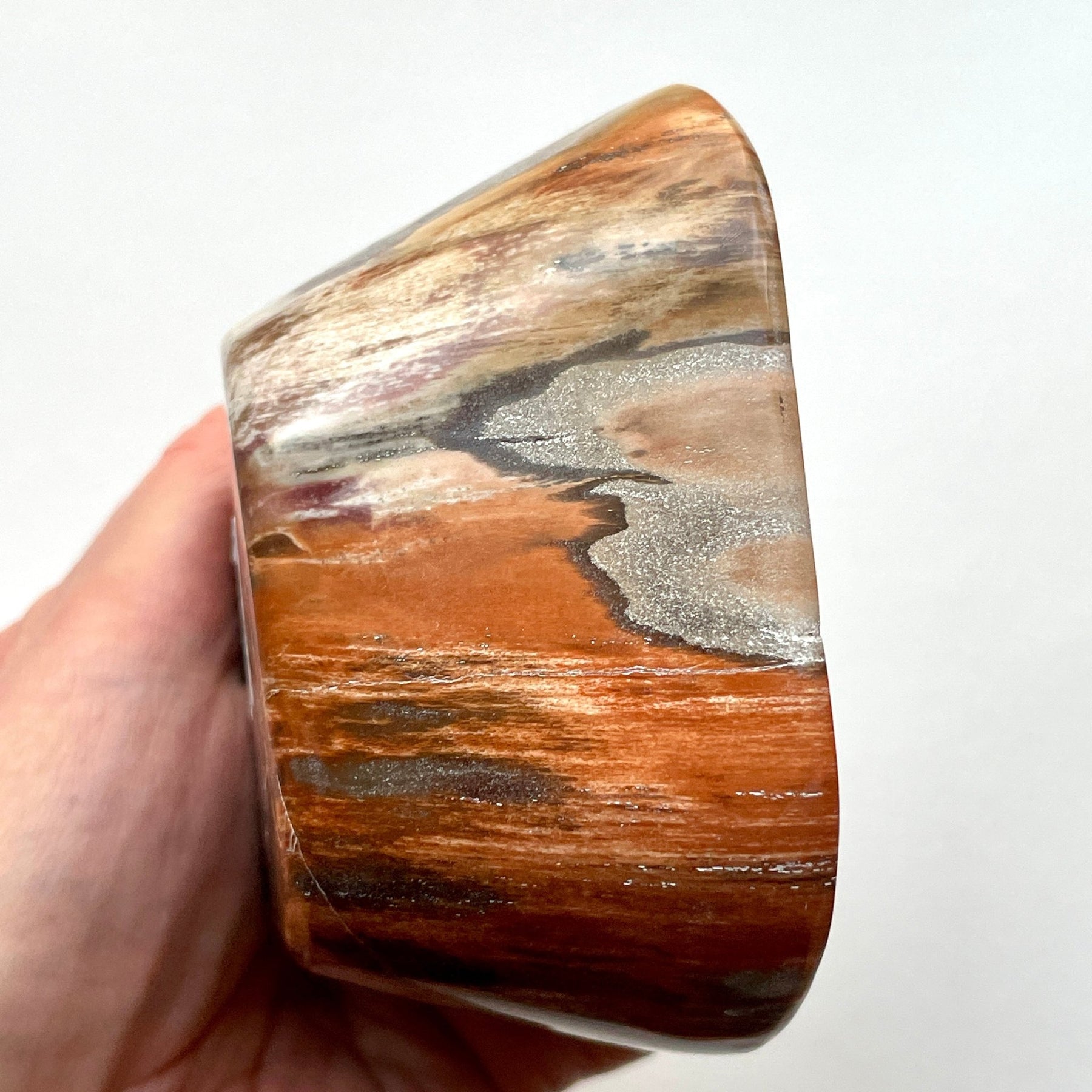 One of the most vibrant color combinations we've found in a smaller petrified wood dish. Rich rust, umber, tan, oranges, and gray swirl together in natural patterns formed over millions of years. A delicate seam of micro druzy adds a subtle sparkle to this collectible piece.