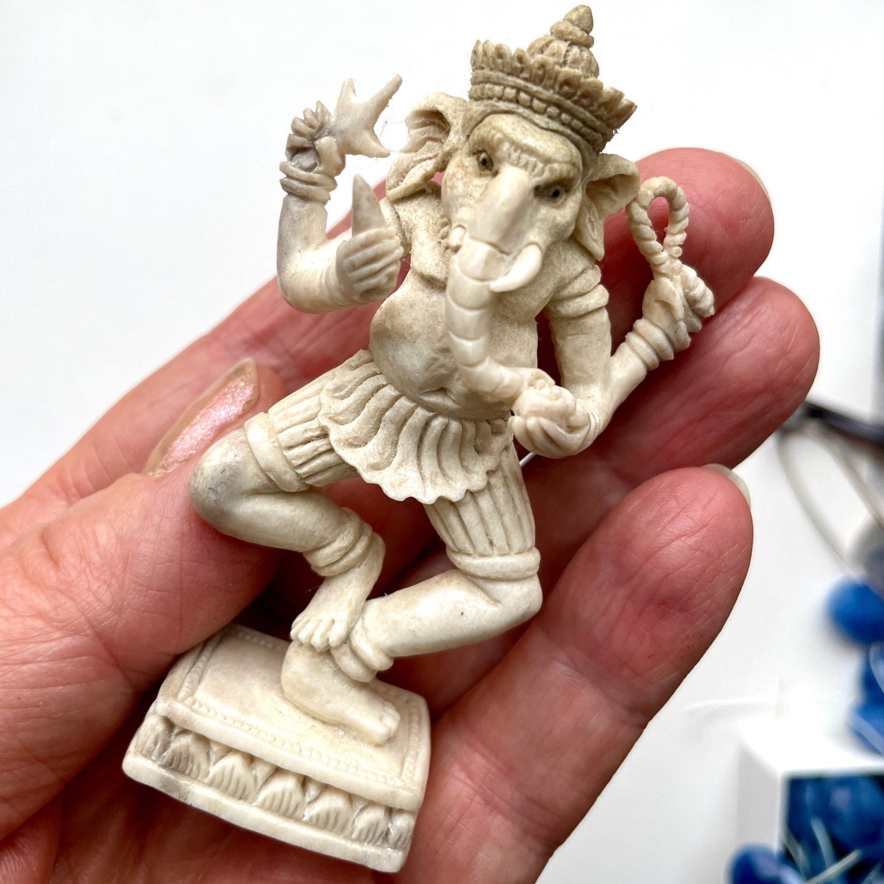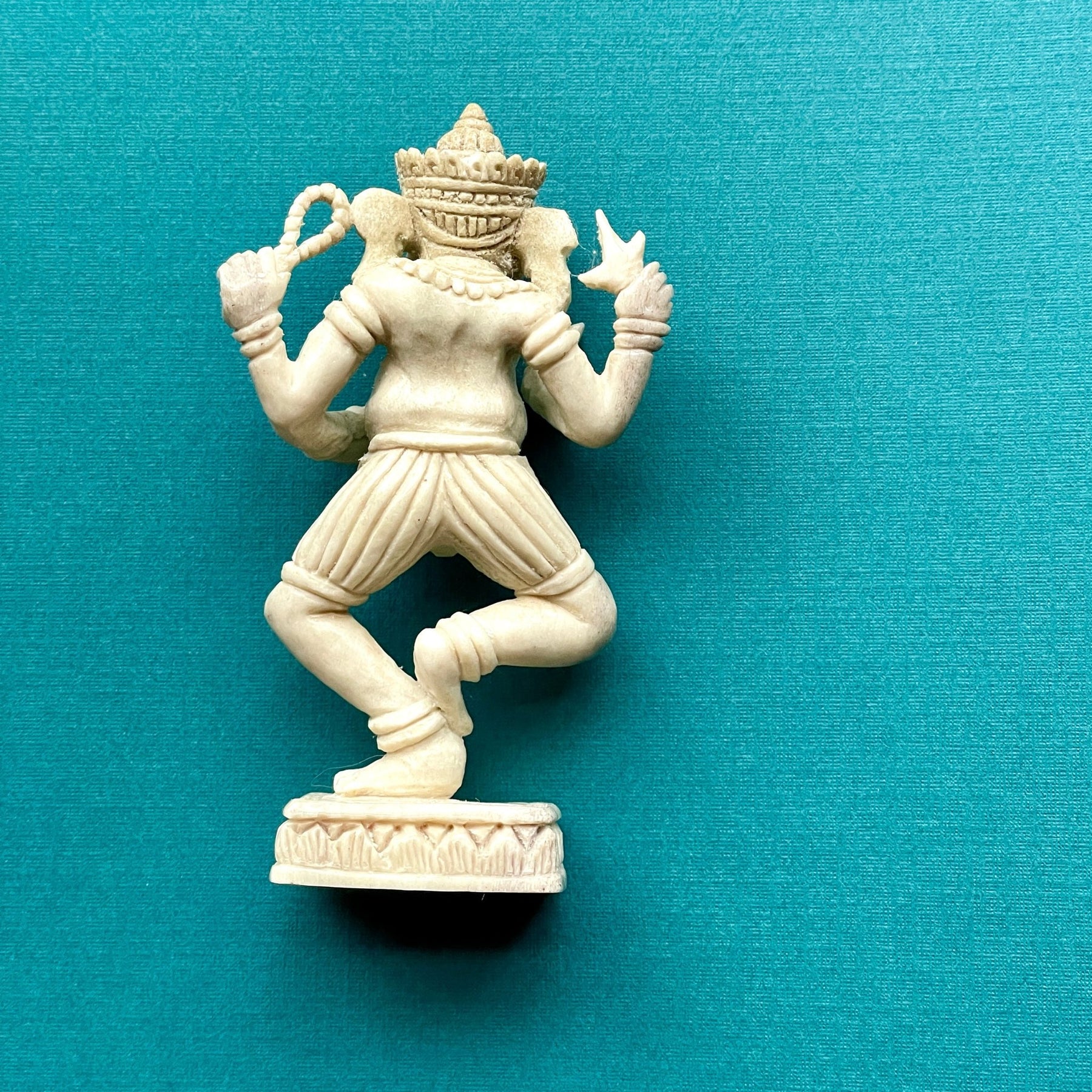 This beautiful Ganesh carving is hand-carved from water buffalo bone with meticulous attention to detail. Every angle showcases the artisan's skill in creating this immaculate piece.