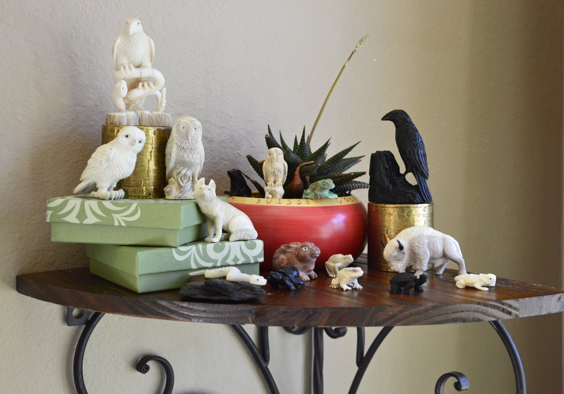 Artist carving from naturally shed buff and cream color Moose Antler.