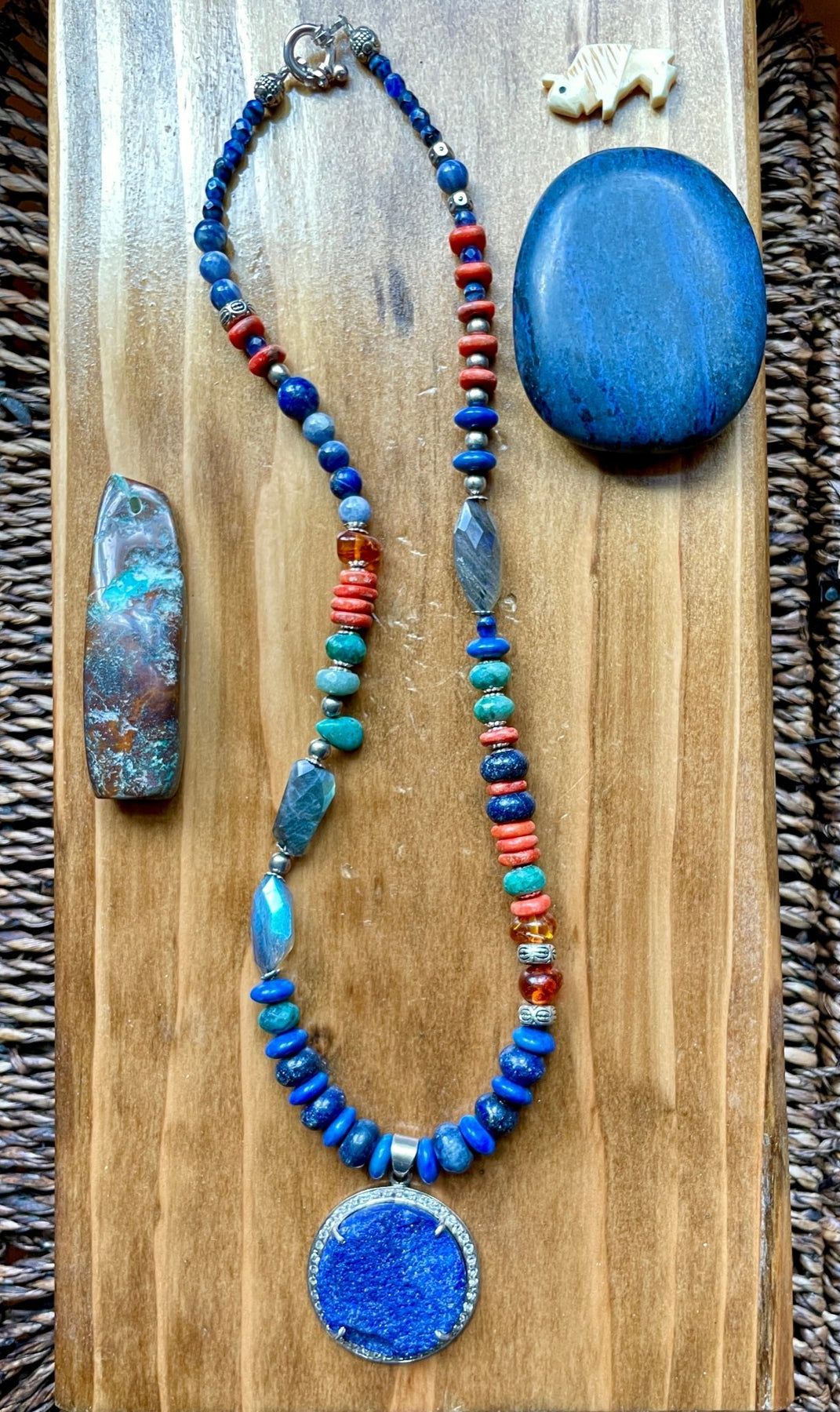 • Natural gemstones: turquoise, lapis lazuli, coral, jasper, spiny oyster shell, sugilite, black onyx