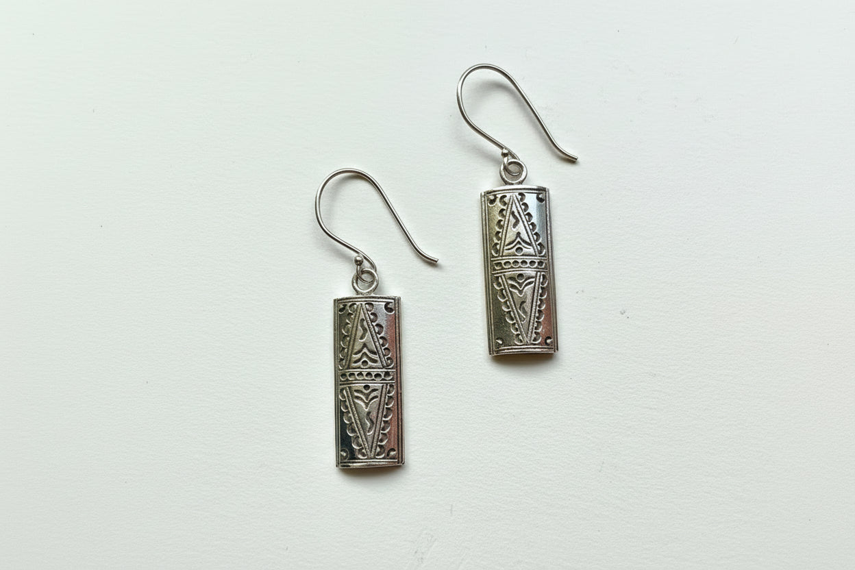 Lightweight and versatile, Vista Trails earrings pair effortlessly with both casual and refined looks. The rectangular silhouette and geometric patterns echo traditional southwestern design elements while maintaining a contemporary wearability.