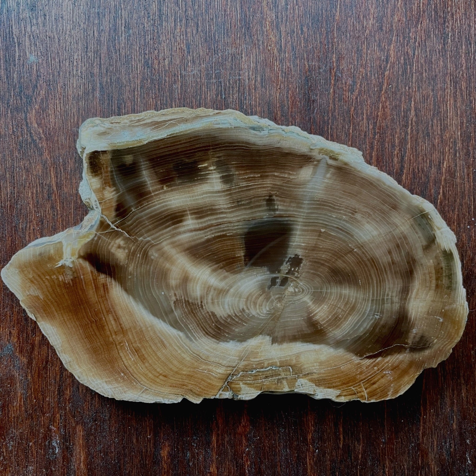 The rich hues in petrified wood come from trace minerals present during fossilization:
