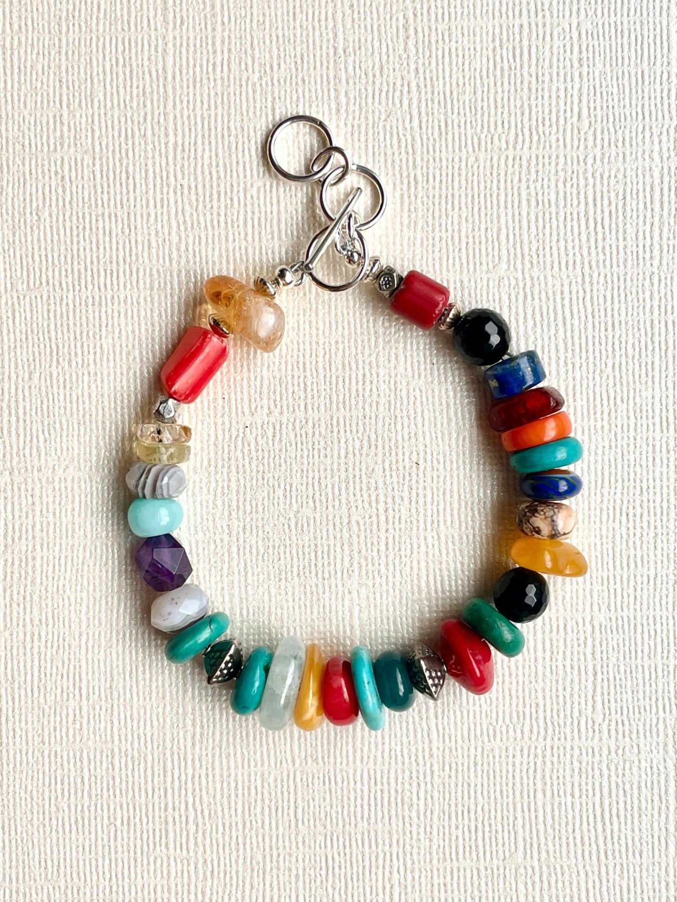 Imagine catching golden rays of sunshine on your wrist wherever you go. This stunning citrine bracelet features sun-drenched yellow citrine and brilliant white topaz in a mix of faceted and smooth pebbles that dance with light, creating little flashes of golden brilliance with every movement.