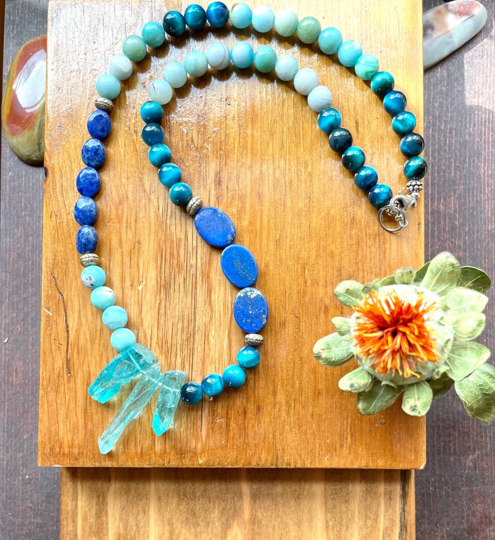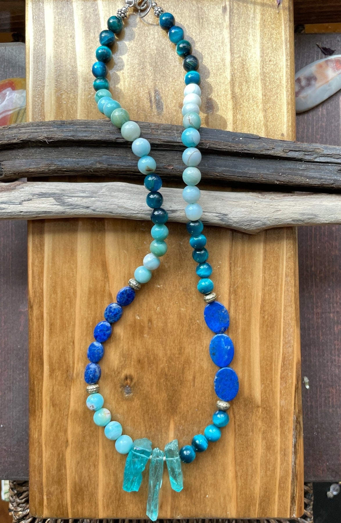 Aquamarine and Amazonite Necklace | Sterling Silver | Handcrafted | Dakota Nature