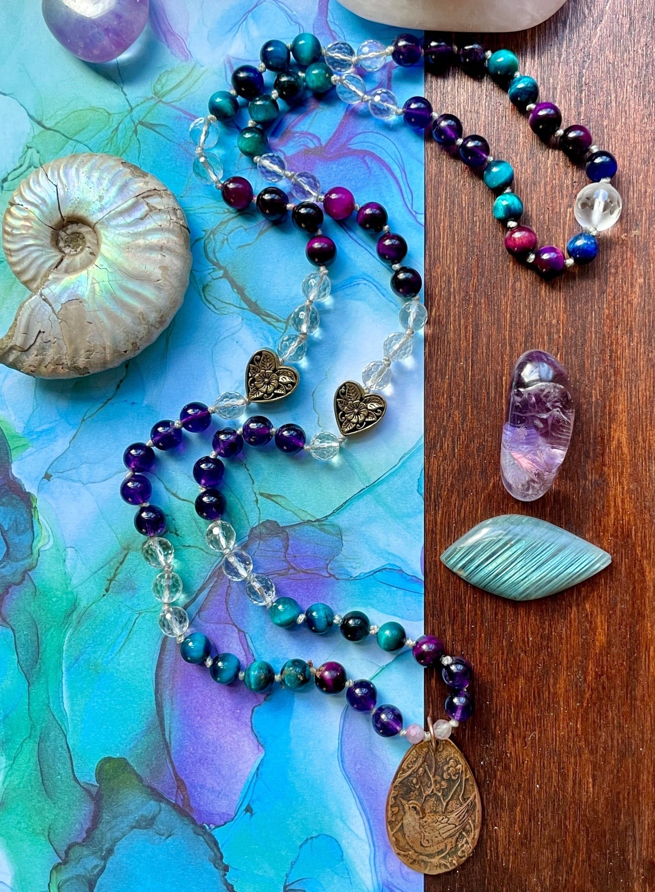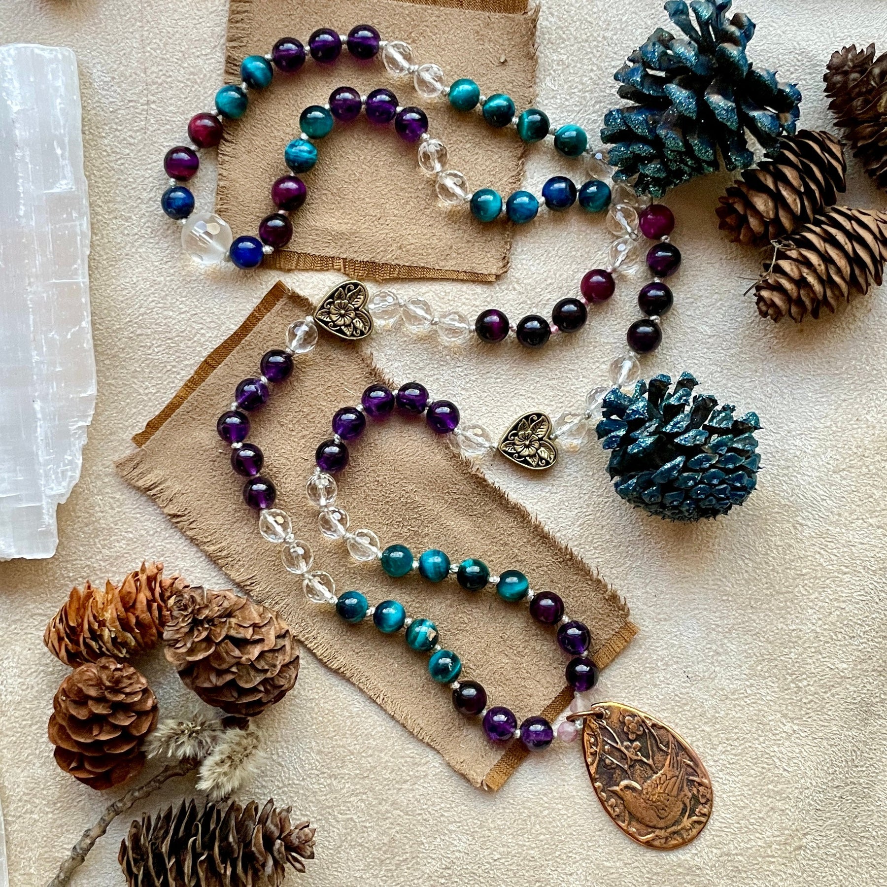 Aquamarine, named for its resemblance to seawater, has been treasured since ancient times for its tranquil blue color. Amazonite, with its soothing green-blue tones, creates a perfect complement. Together, they evoke the peaceful energy of coastal waters.