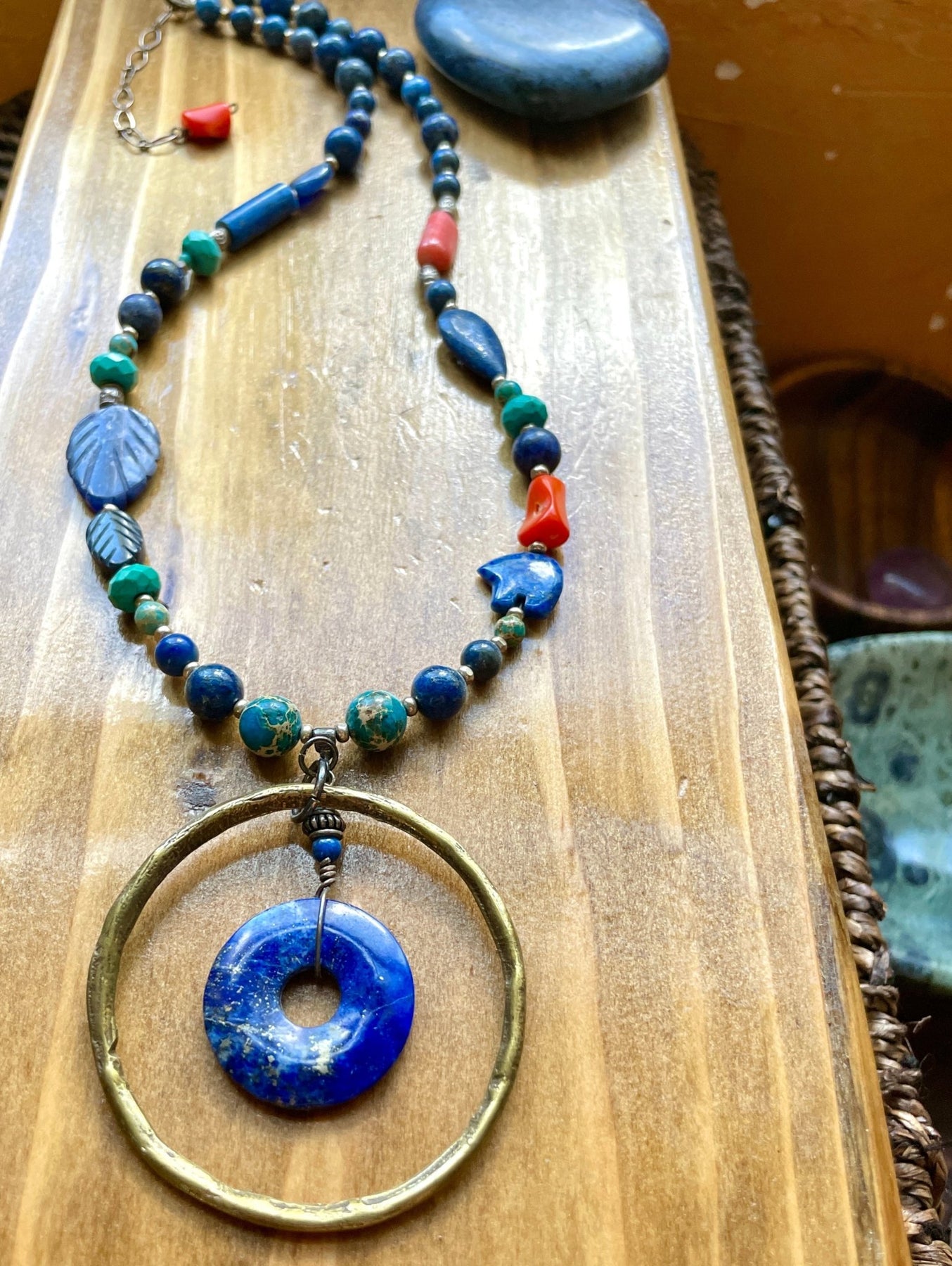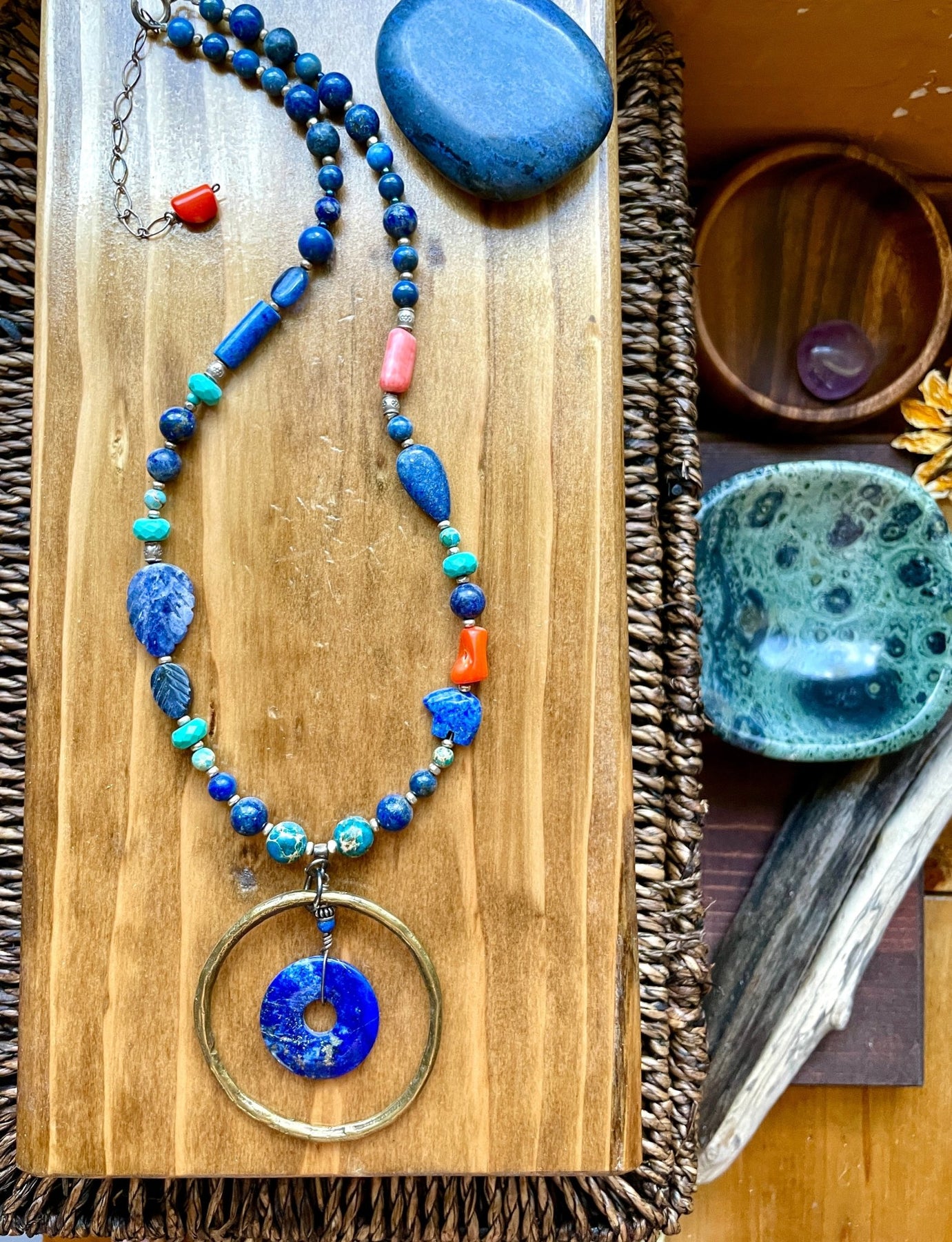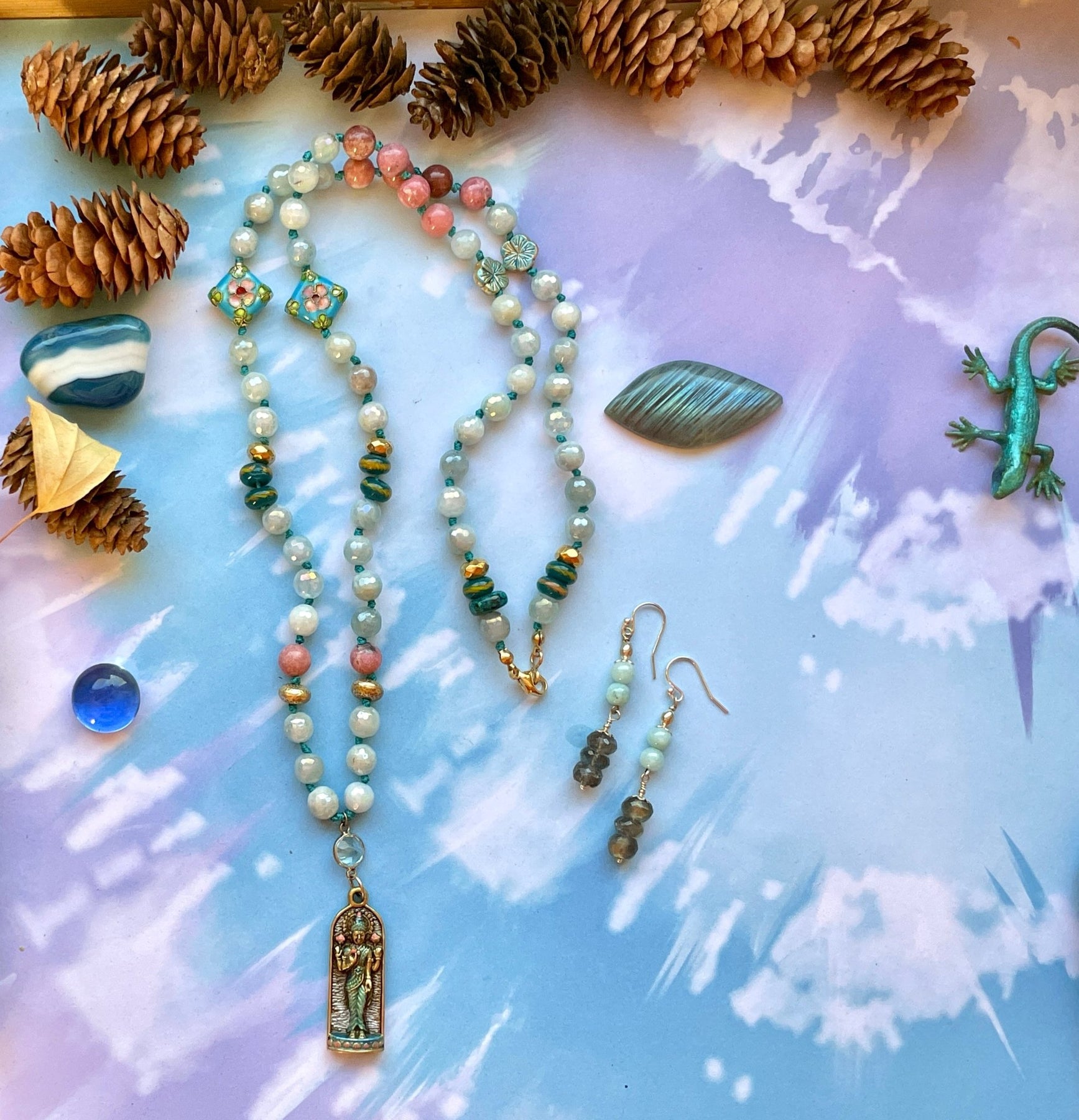 Regular price €172,95This artisan aquamarine and amazonite necklace brings together the serene blues and greens of ocean-inspired gemstones. Each bead has been thoughtfully selected for its natural color and clarity, creating a harmonious blend of cool, calming tones.
