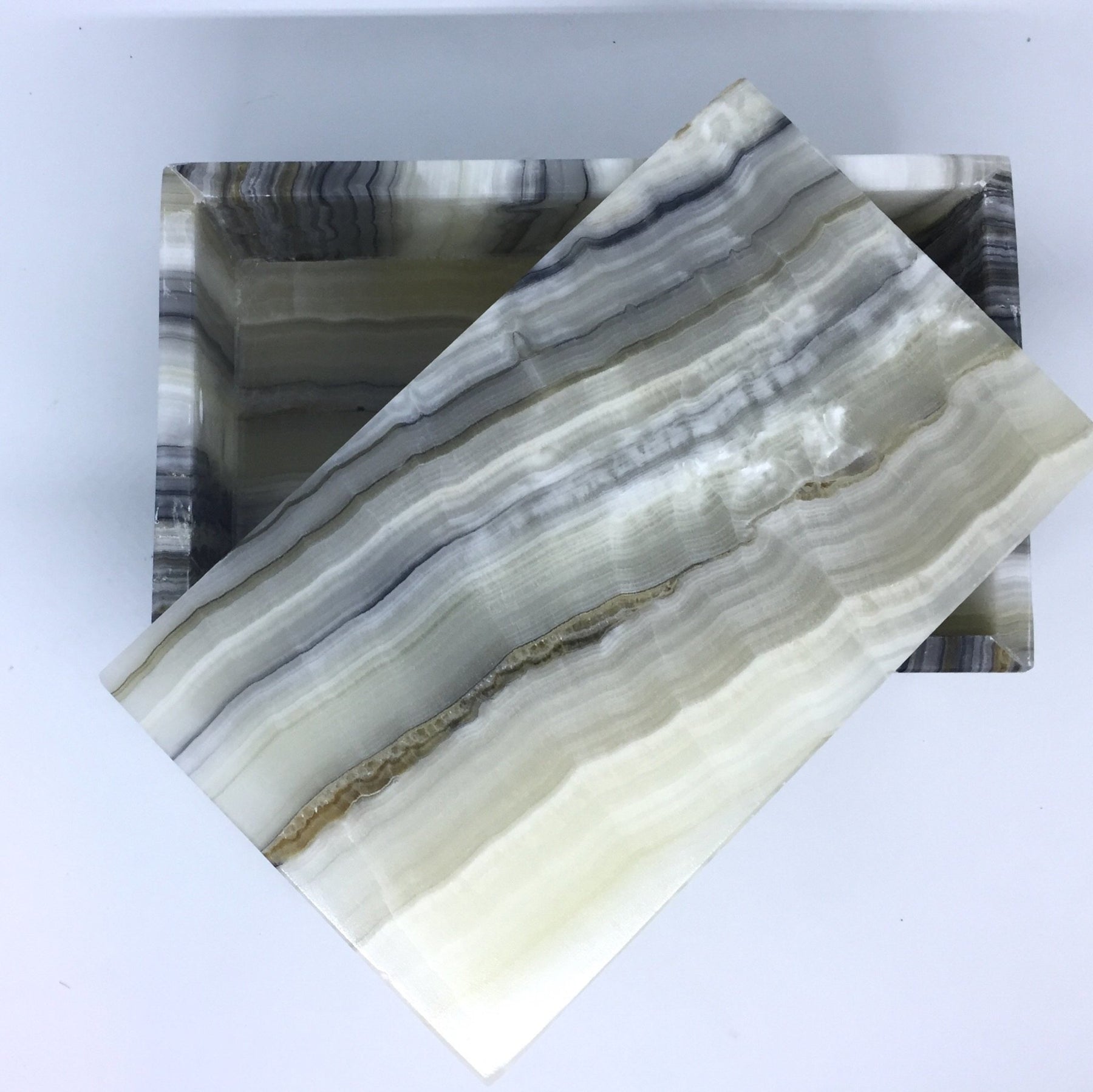 Such is the beauty of our Treasure Trove Onyx Box that you will never tire of seeing the elegant charcoal, cream and softest yellow banding. Enjoy the silky smooth finish. Handcrafted so the lid and corners are perfectly fitted.