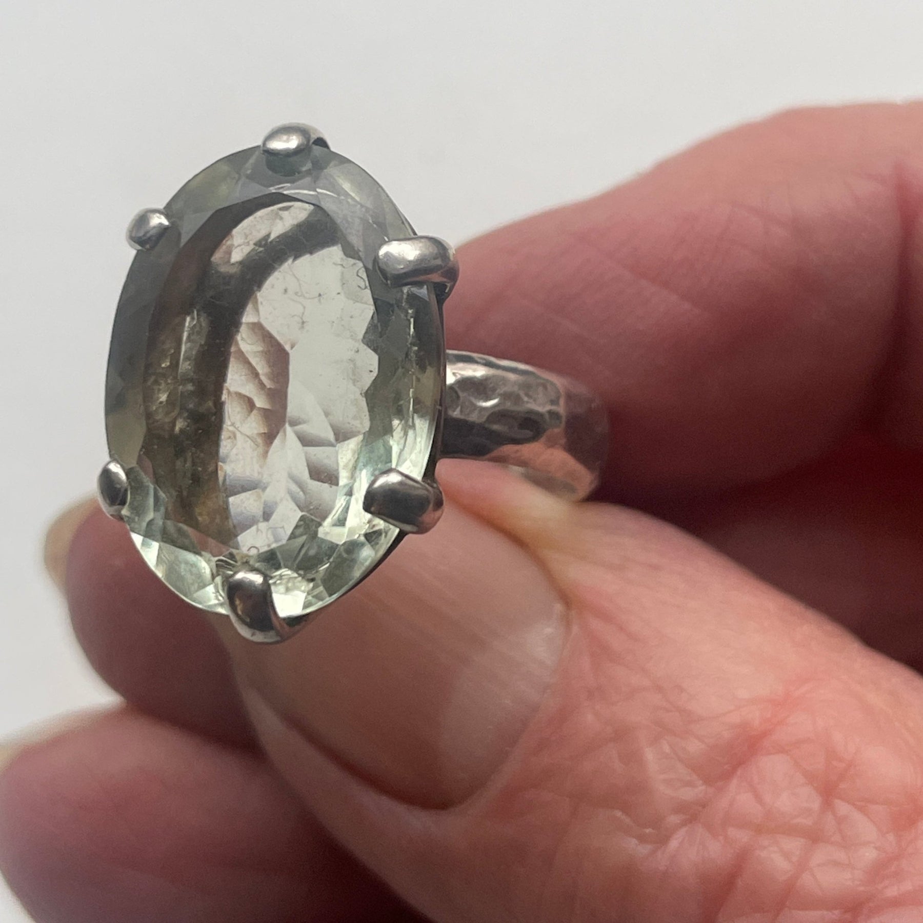 Natural labradorite gemstone set in sterling silver adjustable band, handcrafted in the USA.