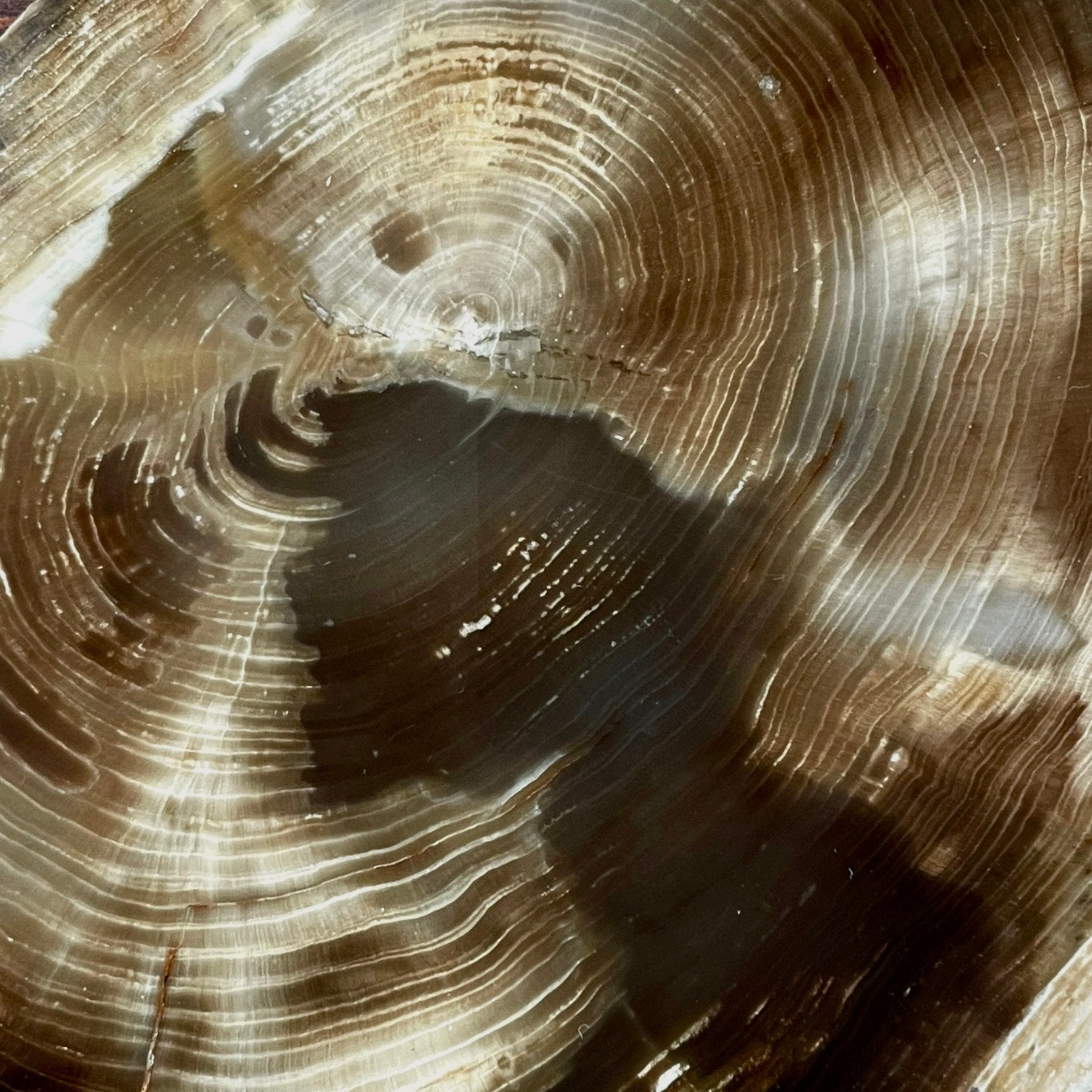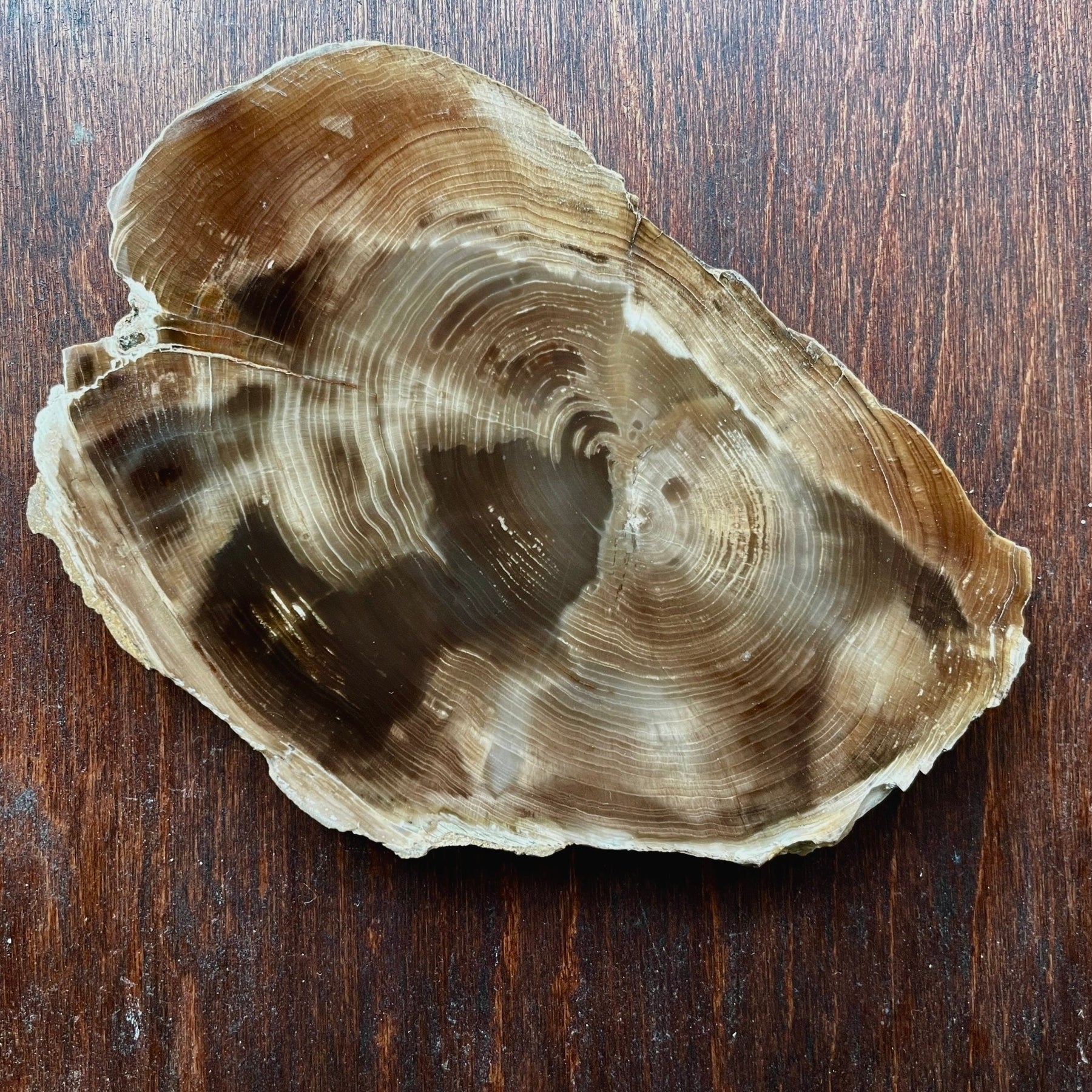Sequoia petrified wood slice has caramel brown, pale umber and cream. Amazing well defined tree rings are still visible! 6” x 4 x ¼”