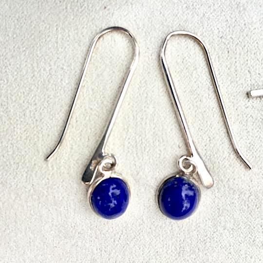 Simple and Eye Appealing describes Boundless Blue Lapis Earrings. From the sleek elongated sterling with a flattened paddle end to the perfect ovals of navy blue Lapis ringed by sterling, our handcrafted Boundless Blue Lapis Earrings are perfection.