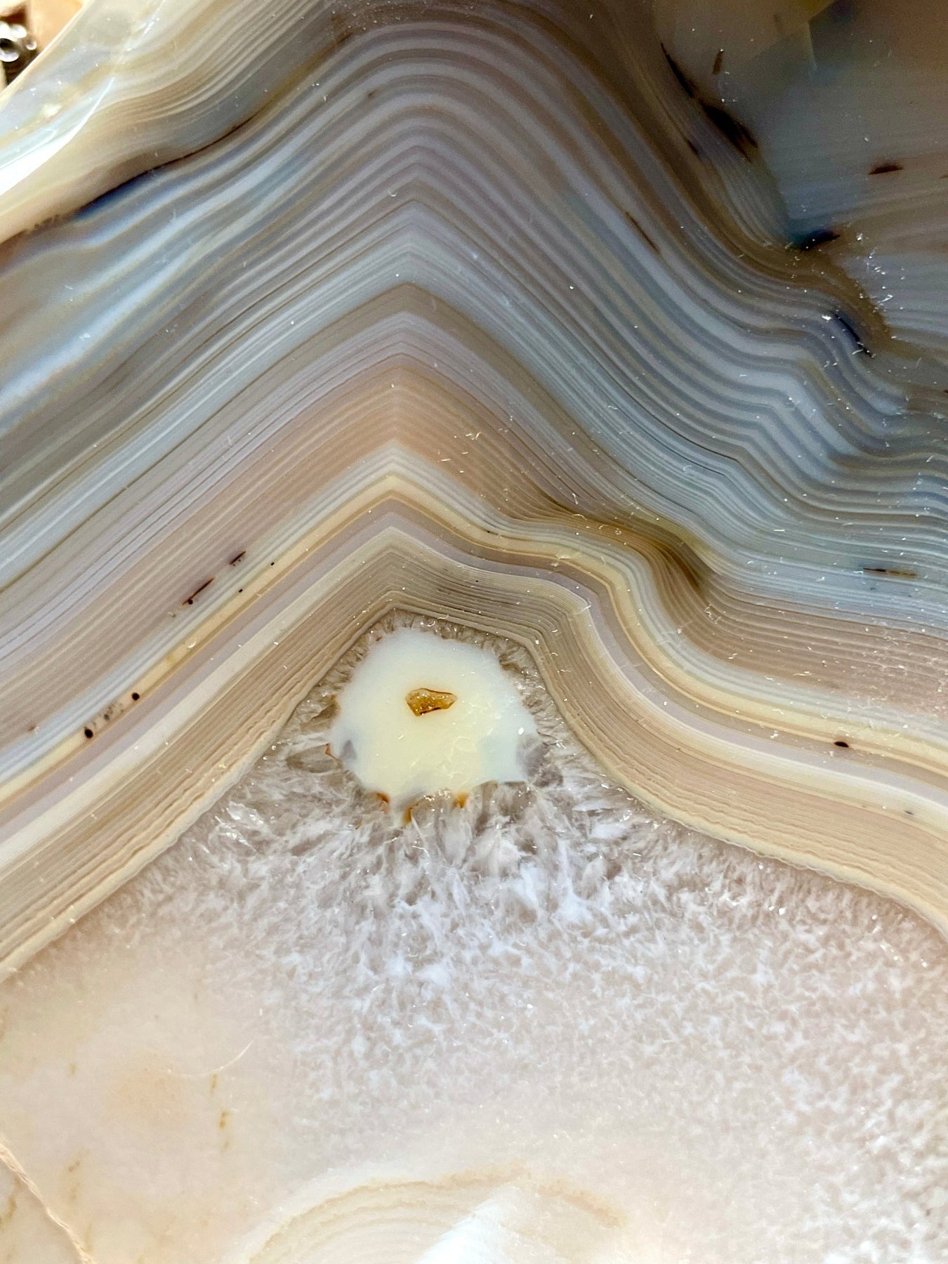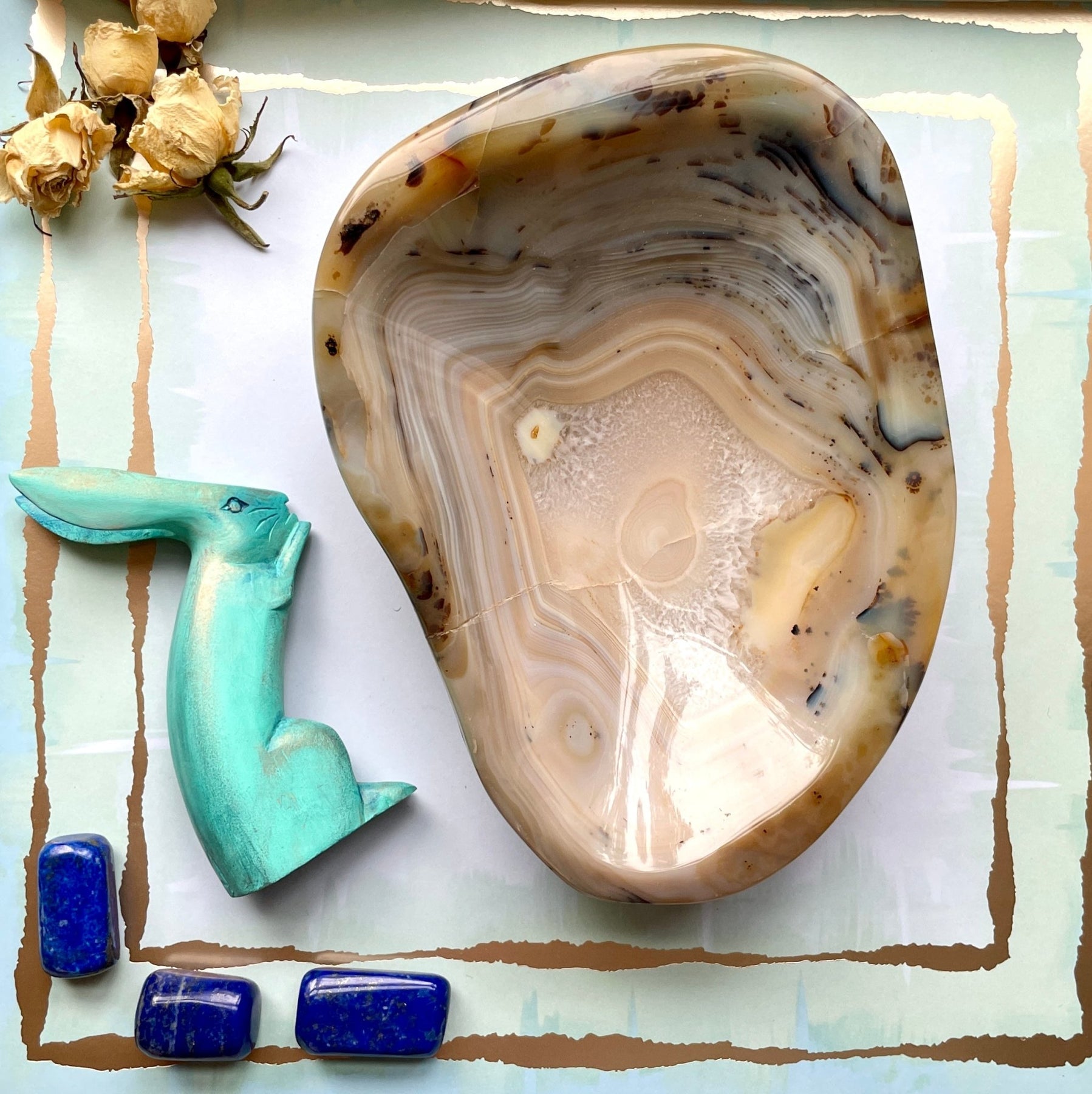 Nature is a masterful artist, leaving us in awe of what is waiting for us to simply see, the not so hidden artworks. Forever Flower Agate Bowl holds a dainty flower within the swirls and lines of nature’s handiwork. This flower is put perfectly in place by only Mother Nature.  Forever Flower Agate Bowl.