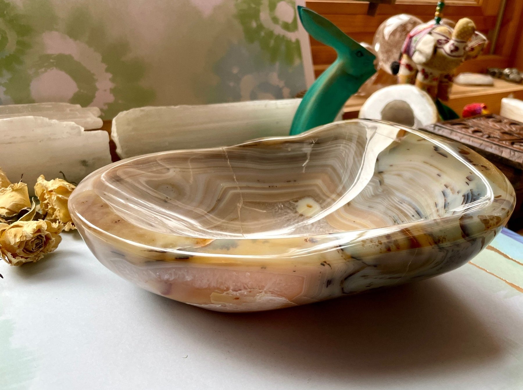 Forever Flower Agate Bowl is 7 ¼” x 5 ½” x 2 ¼